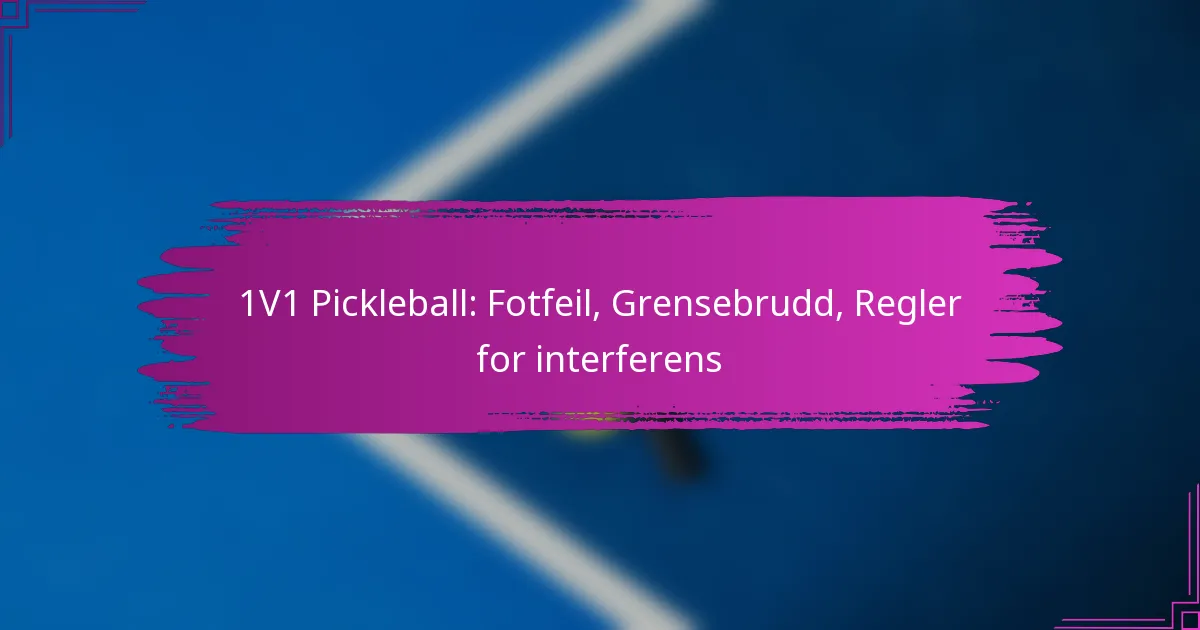 I 1v1 pickleball er det avgjørende å forstå reglene rundt fotfeil, grensebrudd og interferens for å opprettholde rettferdig spill og konkurranseevne. Fotfeil kan føre til tapte poeng på grunn av feil fotplassering under server eller returer, mens grensebrudd skjer når ballen lander utenfor de angitte linjene på banen. I tillegg bidrar reglene for interferens til å sikre at spillerne ikke forstyrrer hverandres evne til å spille ballen, noe som fremmer en jevn spillopplevelse.