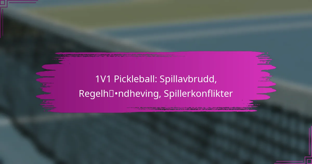 I 1v1 pickleball kan spillavbrudd oppstå fra ulike faktorer som skader, eksterne distraksjoner og utstyrsproblemer, noe som gjør det essensielt for spillerne å håndtere disse pausene effektivt. Regelhåndheving avhenger av selv-officiating og, når mulig, dommere, noe som krever at spillerne er godt kjent med de offisielle reglene for å håndtere tvister. Klar kommunikasjon og strukturerte strategier for konfliktløsning er avgjørende for å løse uenigheter, og fremme et rettferdig og hyggelig spill for alle deltakere.